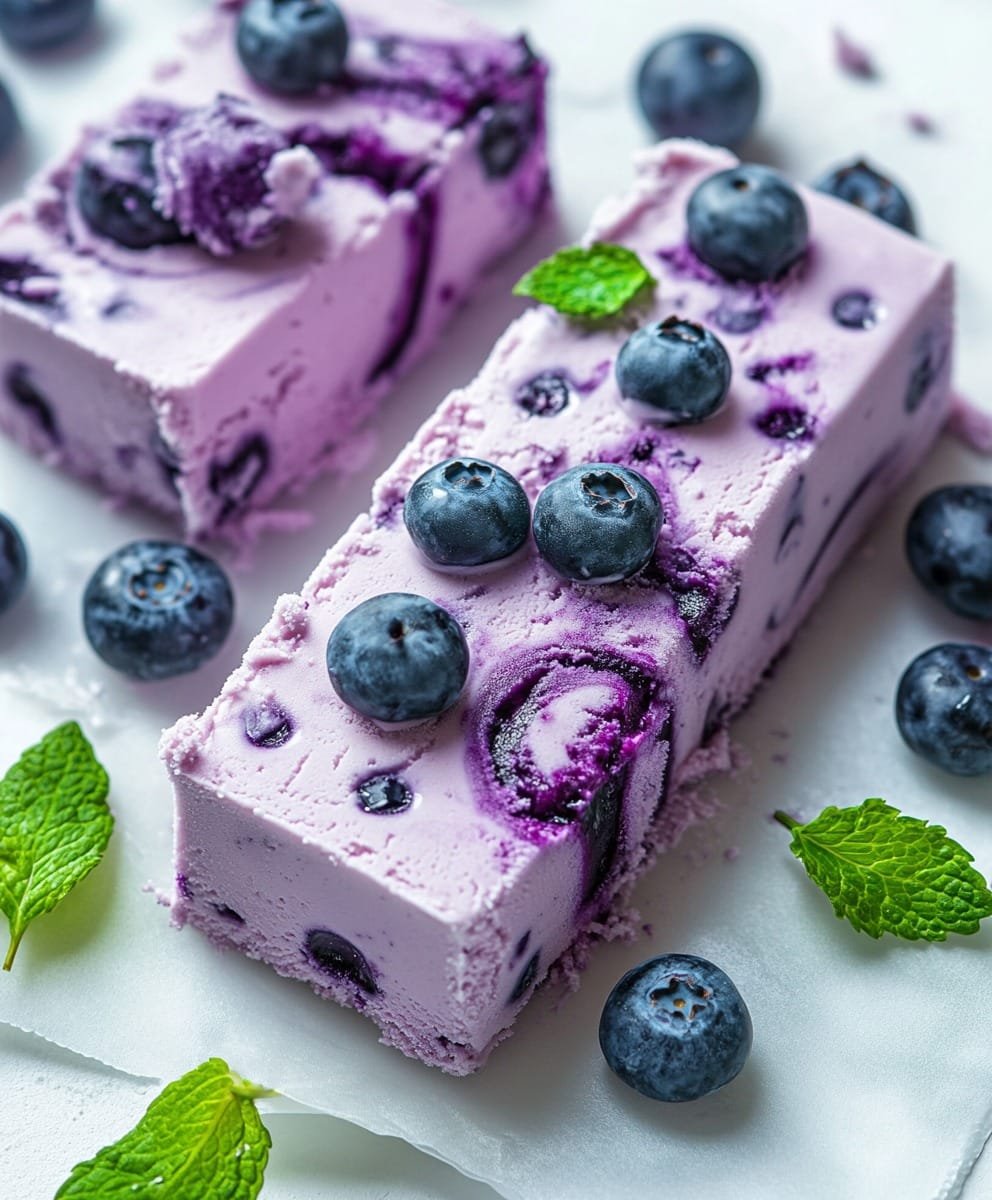 Rien de tel que de se faire plaisir avec ces barres de glace maison au tourbillon de myrtilles ! Une crème glacée à la vanille crémeuse rencontre un doux tourbillon de myrtilles dans chaque bouchée – et en plus, elles sont super faciles à préparer ! Parfaites pour les journées d’été (ou chaque fois que l’on a envie de quelque chose de sucré).