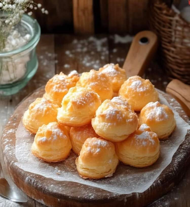 7. Enfournez pendant 25 à 30 minutes jusqu’à ce que les choux soient bien dorés et gonflés.