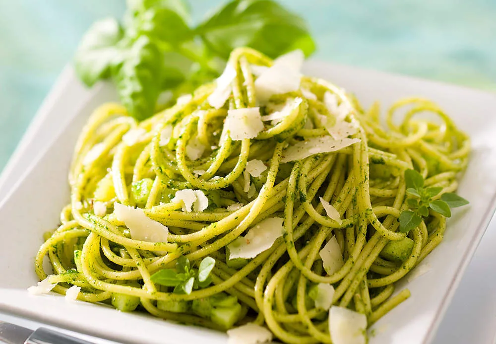 Mélanger les pâtes : Mélangez les pâtes égouttées avec le pesto dans un grand saladier ou directement dans la casserole. Si la sauce est trop épaisse, ajoutez un peu d’eau de cuisson réservée pour la diluer légèrement.